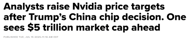 Rysunek 8, Źródło: https://www.cnbc.com/2025/07/15/analysts-raise-nvidia-price-targets-after-us-decision-on-china-sales.html.