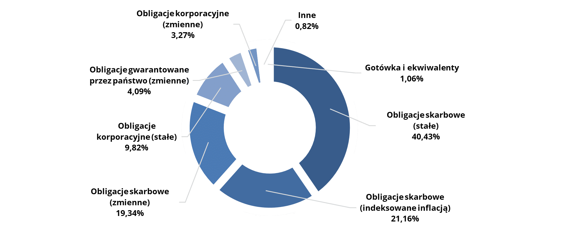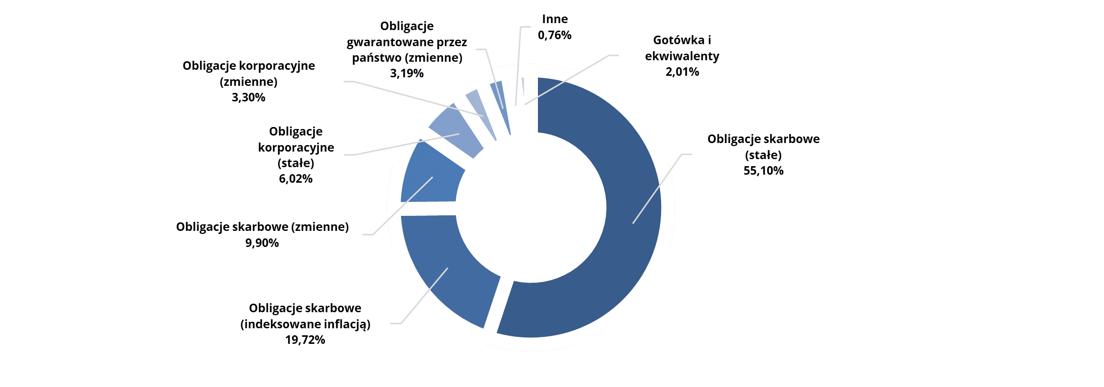 - Co najmniej 40% środków ulokowane jest w obligacje i instrumenty rynku pieniężnego emitowane, poręczane lub gwarantowane przez Skarb Państwa, Narodowy Bank Polski.