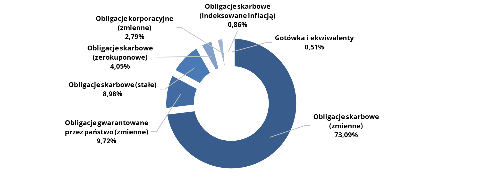 - Subfundusz inwestuje przede wszystkim w polskie dłużne papiery skarbowe charakteryzujące się niską zmiennością.