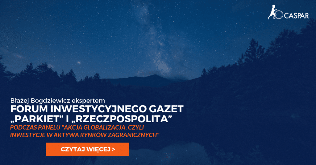 Jest nam bardzo miło poinformować, że Błażej Bogdziewicz będzie uczestnikiem forum inwestycyjnego gazet „Parkiet” i „Rzeczpospolita”. Dyrektor Inwestycyjny i Wiceprezes Zarządu Caspar Asset Management S.A. będzie brał udział w dyskusji podczas panelu dotyczącego inwestowania na rynkach zagranicznych – „Akcja globalizacja, czyli inwestycje w aktywa rynków zagranicznych”. Forum odbędzie się 22 listopada 2018 r. w Warszawie […]